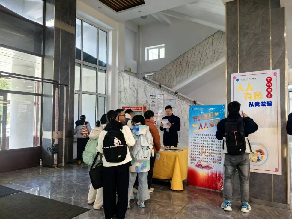 活动现场,食堂电子屏循环播放节粮宣传海报,普及世界粮食日相关知识;志愿者向师生发放《粮食节约宣传手册》,并现场解读《党政机关厉行节约反对浪费条例》,进一步增强全员节约意识。