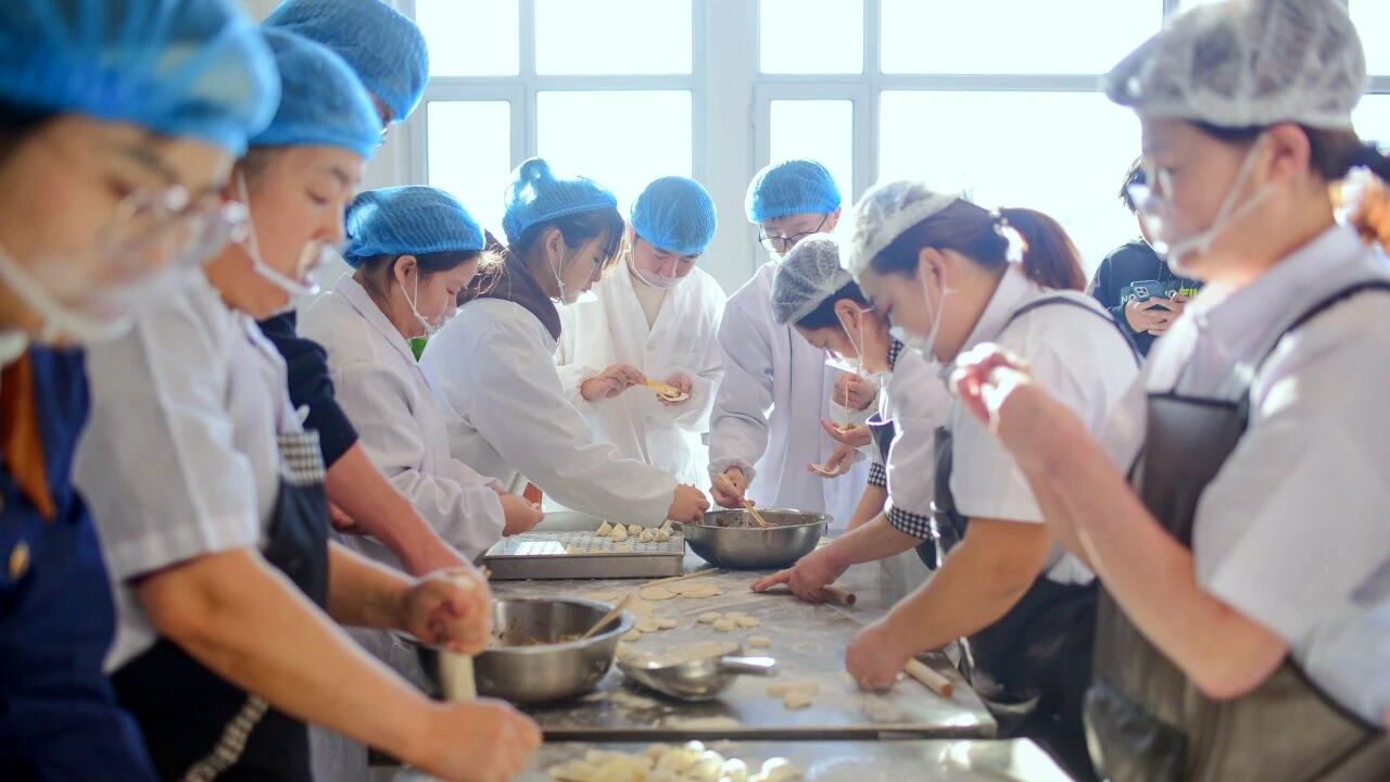 《健康饮食与烹饪技术》 课程,由集团具备营养教育专业背景,持有多项餐饮职业资格的优秀青年员工授课。同时还邀请亚冬会主媒体中心行政主厨、全国烹饪大赛金奖获得者参与实践指导,系统教授中式面点、家常菜肴制作技巧,融入营养科学与饮食文化知识,帮助学生提升生活技能与健康意识。