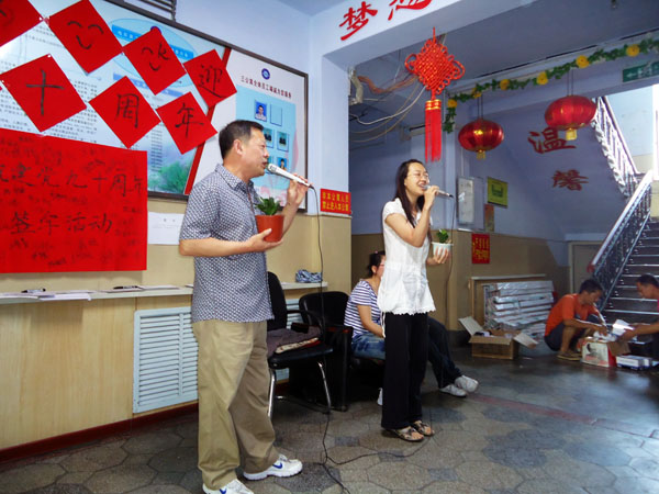 为迎接建党九十周年,抒发三公寓员工学生的爱党情怀, 6月25日上午9:00本科生公寓中心在三公寓大厅举办了“公寓放歌,迎建党九十周年”红歌演唱活动。