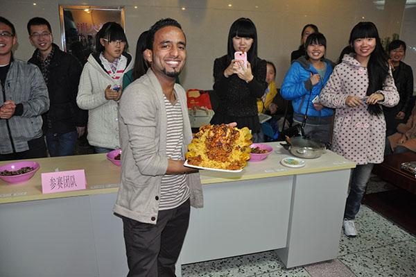 本次大赛由学生第二、三、九公寓以及外专留学生公寓承办,以公寓为单位,中外学生共15组选手参赛。比赛分为两个环节,现场烹饪及菜品双语介绍。现场制作中各组选手都精心地准备着自己的参赛作品,紧张有序,分工协作。每组选手均在特定时间内完成作品,盘盘各式各样的精美佳肴呈现在大家的眼前。比赛现场弥漫着诱人的香味。观众席上,亲友团们的加油助威声不断,更为各自支持的队伍献上阵阵掌声。中外同学纷纷竞技,将自己家乡的特色美食展现给在场的评委及观众。最终,大赛评委通过对菜品色泽外观、口感味道、特色创意及双语介绍四个方面的综合评定,分别评选出一等奖、二等奖、三等奖各一名、参与奖若干名。比赛在欢声笑语中落下了帷幕,许多同学要求明年继续举办该项活动,让更多的中外学生进行交流。