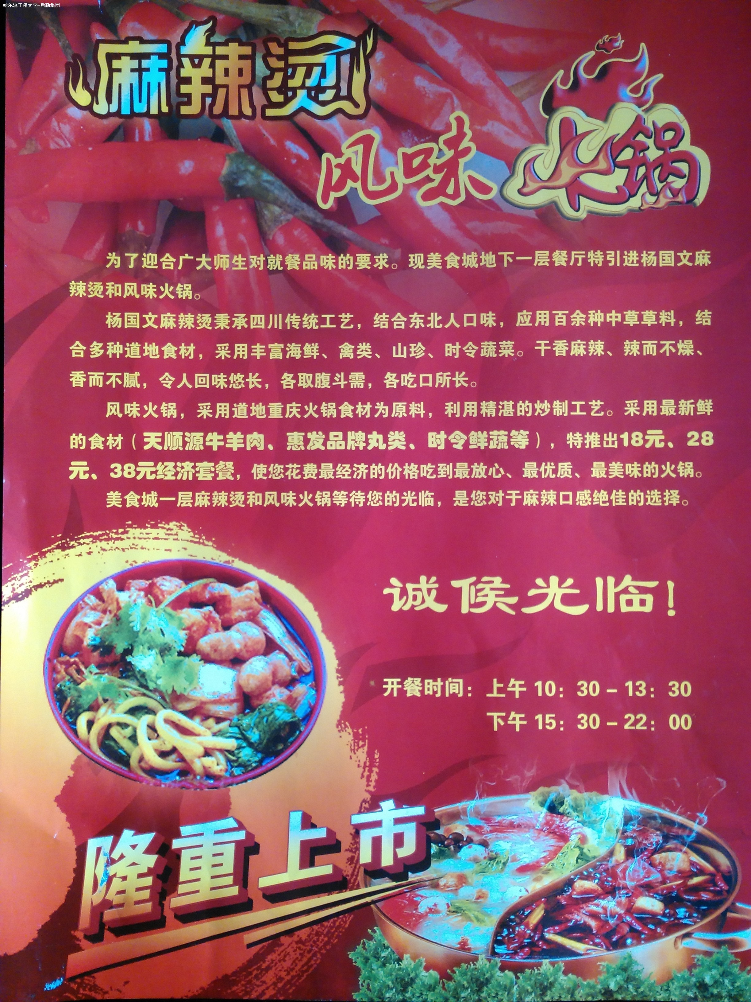 风味火锅采用地道重庆火锅食材为底料,天顺源牛羊肉、惠发品牌丸类、时令蔬菜等,推出18元、28元、38元经济套餐供选择。