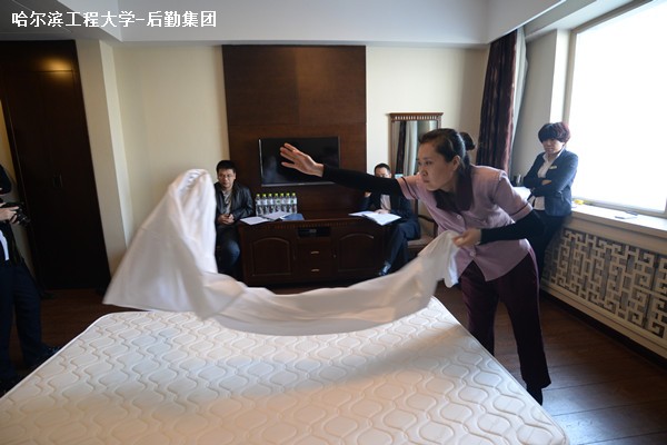 随着中式铺床职业技能竞赛26日在校国际交流中心开赛,由校工会和后勤集团联合主办的校“服务育人”职业技能大赛暨第二届后勤员工职业技能竞赛。