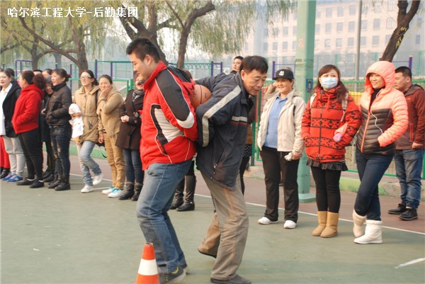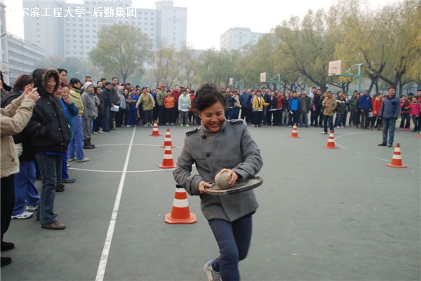 为加强部门间交流,活跃后勤文化生活,提高员工身体素质,11月6日,后勤集团2015年趣味运动会在学校南区篮球场举行。394名员工利用午休时间走向运动场,体会运动带来的“趣味”。 精心准备的趣味运动会既有考验团队合作精神的集体项目,也有充分展示个人风采的单人项目。赛场中、场内外欢乐互动。本次比赛设胯下传球、夹篮球跑、托球接力、拔河四个集体项目,以党支部为单位组队参赛。运动场上,参赛选手激情四溢,以饱满的热情、昂扬的拼劲参与到趣味运动会中。 笑声和喝彩声连续不断,此次趣味运动会不仅丰富了职工的业余生活,提高了职工的身体素质,同时也展现了后勤职工蓬勃健康的身心状态和积极活泼的后勤风采。