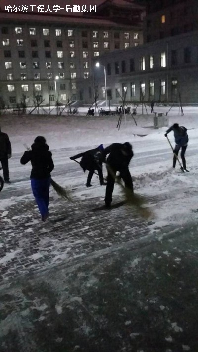 10月9日,校园迎来了今冬的第一场雪。雪花洋洋洒洒下了一天,景色煞是迷人,可也给人们的出行带来不便。早晚温差大,积雪易融化结冰,为避免留学生、外籍教师和家里的小朋友们滑倒受伤,外专留学生公寓全体员工连夜清雪,一时间,扫帚、铁锹、挡雪板轮番在寒风中挥舞,人多力量大,大家齐心协力,分工明确,没多久就把公寓门前、人行道和疏散通道的积雪清理干净。寒风冷冽,公寓员工的额头和脸颊却满是汗珠,劳动温暖了他们的身体,也温暖着住宿师生的心。