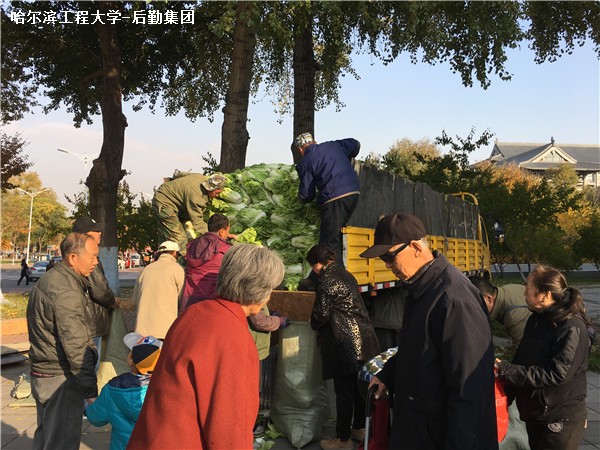 10月18日、19日启航中心门前装运蔬菜的卡车前排起了长长的队伍,为了让全校教职工买到新鲜、 绿色,质优价廉的秋菜,后勤集团将小赵家农场种植的秋菜运输到学校供教职工选购。