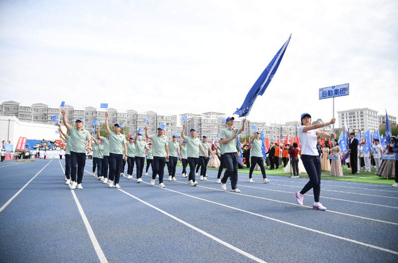 首先举行的是运动员代表入场仪式,24支代表队伴着运动员进行曲有序进入赛场,后勤集团代表队作为教工团体代表第一个入场,运动员代表们迈着矫健的步伐走过主席台。他们精神抖擞,意气风发,铿锵有力的“后勤不后勇夺佳绩,服务保障争创一流”口号,是集团近年来工作内容聚焦学校战略目标,提高保障支撑能力的高度概括。