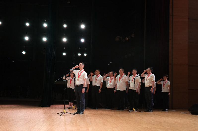 接着,全体党员起立,由领誓人刘安伟带领大家重温入党誓词及入党宣誓。会场氛围庄严肃穆,入党誓词十二句话铿锵有力响彻剧场,表达了集团党员坚定的决心和使命感。须臾间,回顾了自己当初加入党的初心和承诺,激励着大家迈向复兴征程为党的事业奋斗终生。