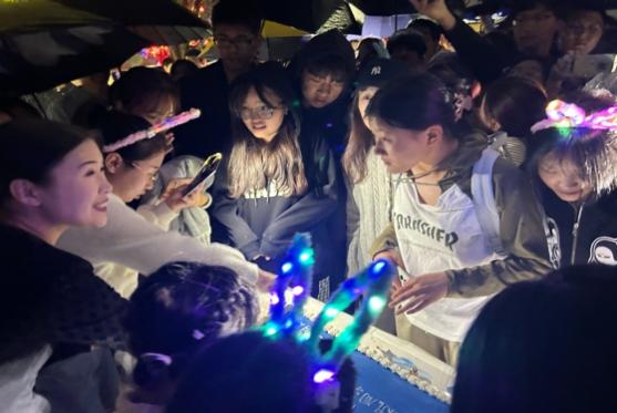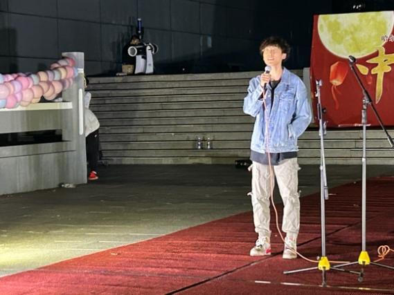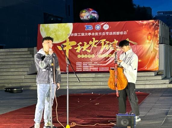 当晚虽细雨绵绵,丝毫不影响同学们参与活动的热情,更为灯谜会增添了几分浪漫气息。17点30分,伴随着欢快喜庆的国风音乐,活动准时开场。公寓中心特邀学生乐队“畅享声乐团”为大家带来了精彩的歌曲串烧,引来现场观众纷纷驻足聆听。