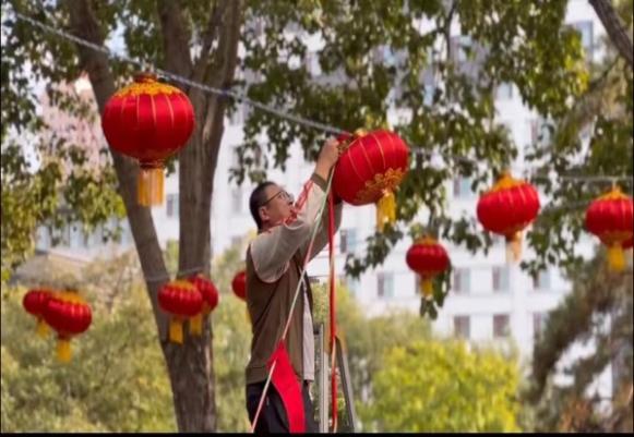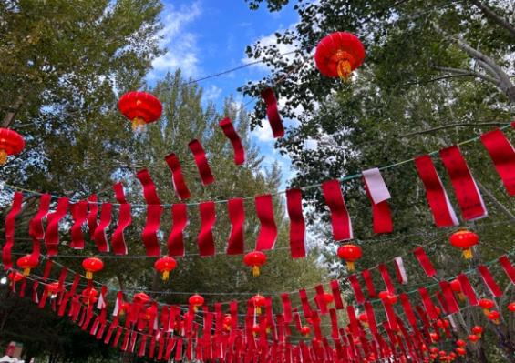 绿树掩映下的灯谜方阵