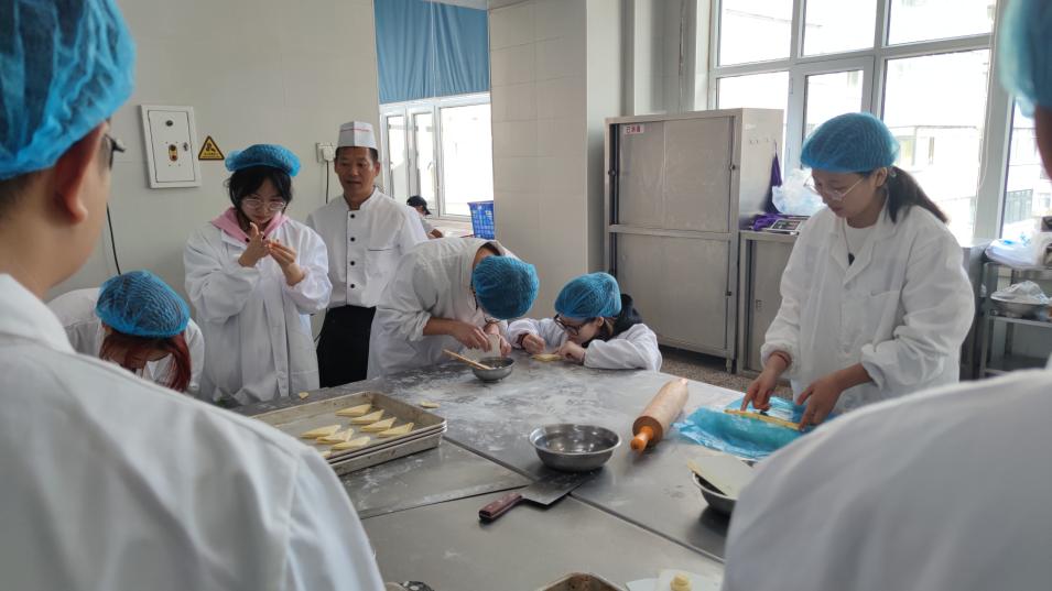 为了让同学们更加了解学校后勤工作,丰富在校同学的学习生活,增长同学们的劳动技能, 10月14日上午,后勤集团饮食党支部与数学学院基础数学研究生党支部在美食广场二楼糕点加工间联合开展“后勤小课堂”劳动实践体验活动,数学学院16名研究生党员参加活动。