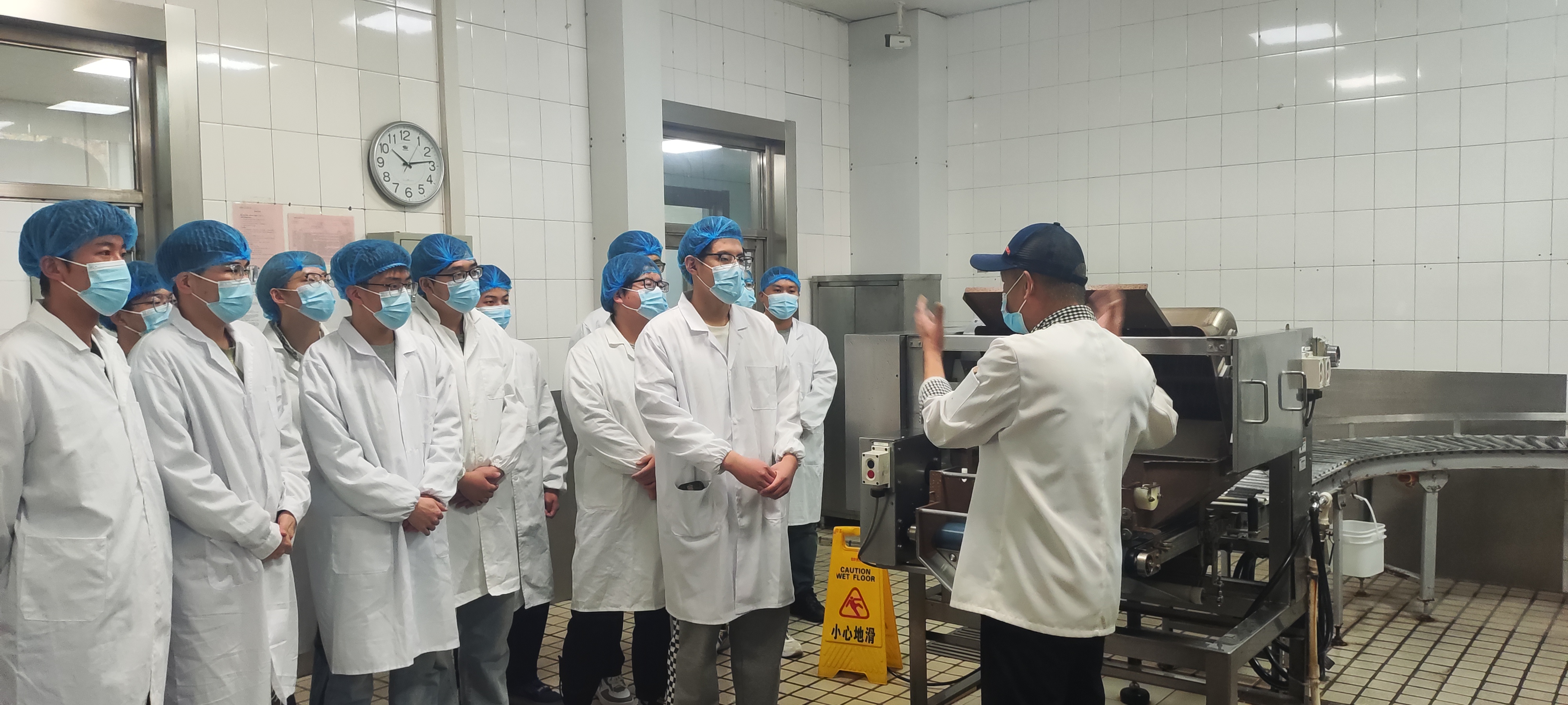 活动开始前,同学们在餐厅管理员赵宇琨的带领下,在指定区域穿好工作服,戴好头套与口罩;之后进入食堂后厨,依次参观了米饭生产线、储菜间、洗菜间和切菜间等,全程由工作人员讲解食堂相关操作规程。