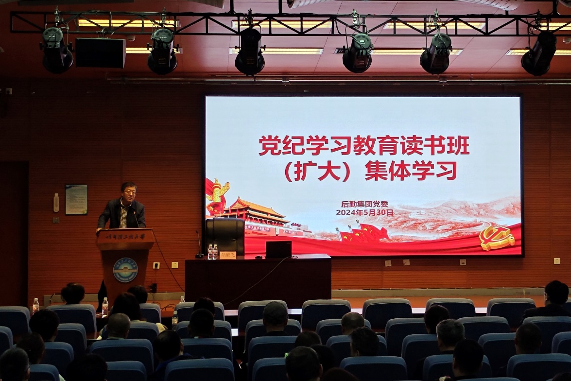 为全面深入系统学习贯彻习近平总书记关于党的纪律建设的重要论述,营造“学纪、知纪、明纪、守纪”的浓厚氛围,进一步提升后勤集团党员干部的政治素养和廉洁自律意识,确保党纪学习教育取得扎实成效。按照《后勤集团党委党纪学习教育专题读书班实施方案》集团于5月30日、31日在启航活动中心学术报告厅举行党纪学习教育读书班(扩大)集体学习和研讨座谈会。集团党委书记张阳红主持会议并讲话。集团领导、全体中层干部、党支部书记参加会议。