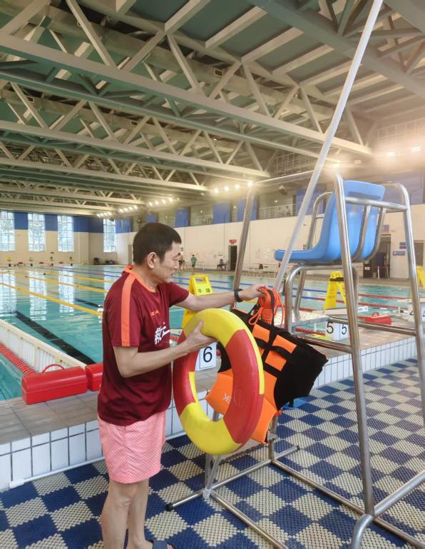 随着游泳馆人流量大幅增加,水处理员每日多次检测泳池余氯、pH 值等关键指标,即便到了深夜,仍坚持开展滤罐清洗、药剂投加等维护作业,确保泳池水质持续达标。救生员全程值守瞭望台,实时监控泳池内人员状态,定期组织开展急救演练,切实提升应急响应能力,为师生游泳安全筑牢防线。