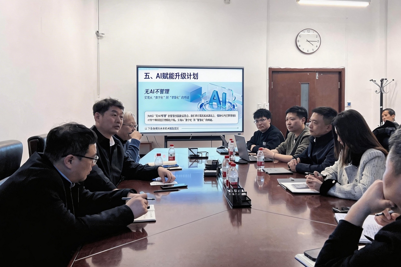 王秦辉要求要加快系统测试运行,优先上线师生迫切需求的模块。他号召全体干部员工要主动在系统中“找位置”,确保系统建设与改革方向同频共振,以时不我待的紧迫感让“智慧后勤”成为集团改革发展的新引擎,成为服务师生的新力量。与会人员一致表示将深度参与系统建设,以信息化驱动改革,以信息化赋能服务,不断提升后勤服务保障能力水平。